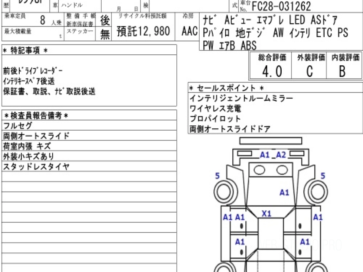Оценка аукциона: 4, что гарантирует хорошее техническое и косметическое состояние кузова и салона.