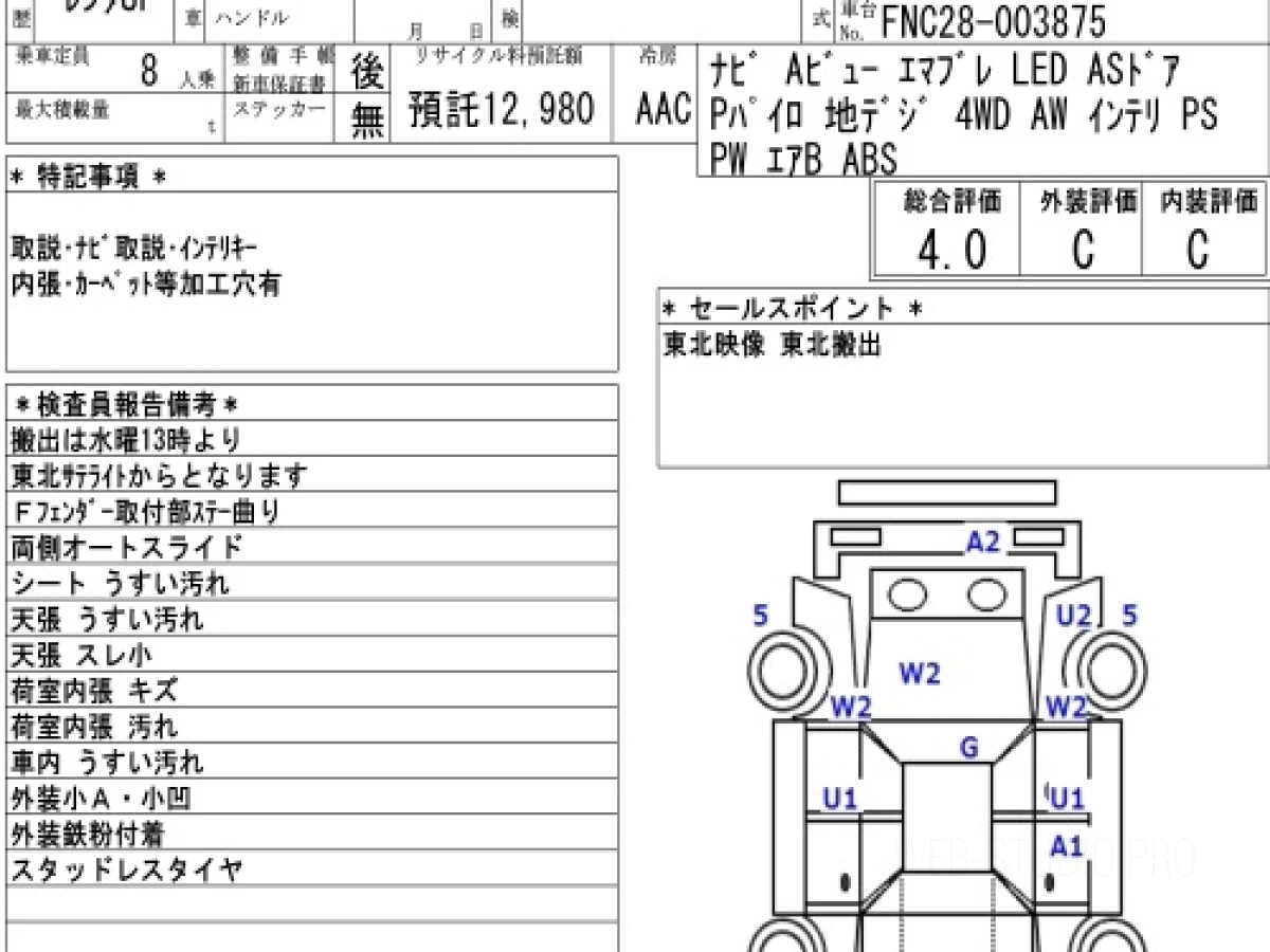 Оценка аукциона: 4, что гарантирует хорошее техническое и косметическое состояние кузова и салона.