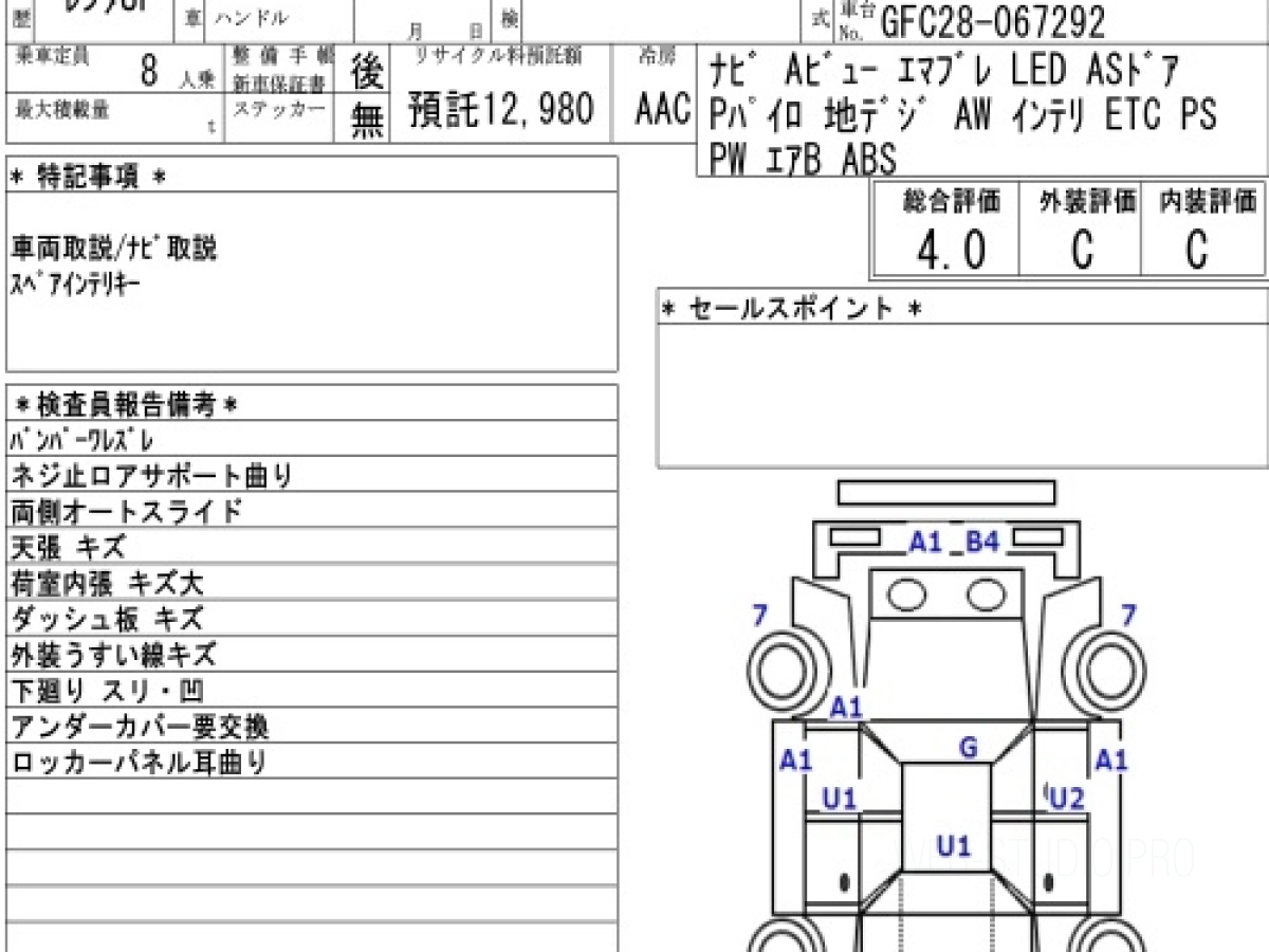 Оценка аукциона: 4, что гарантирует хорошее техническое и косметическое состояние кузова и салона.