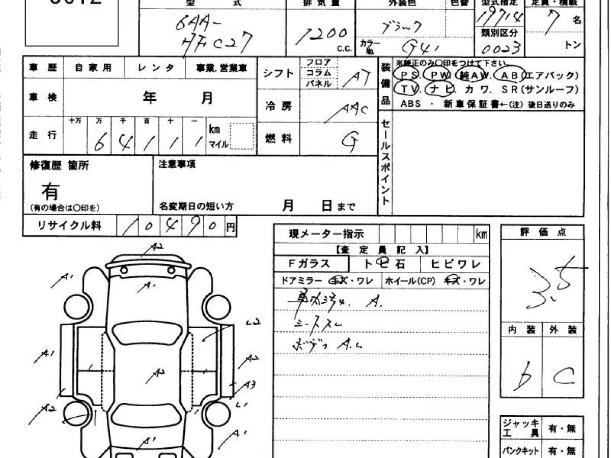 Оценка аукциона: 3.5, что гарантирует хорошее техническое и косметическое состояние кузова и салона.