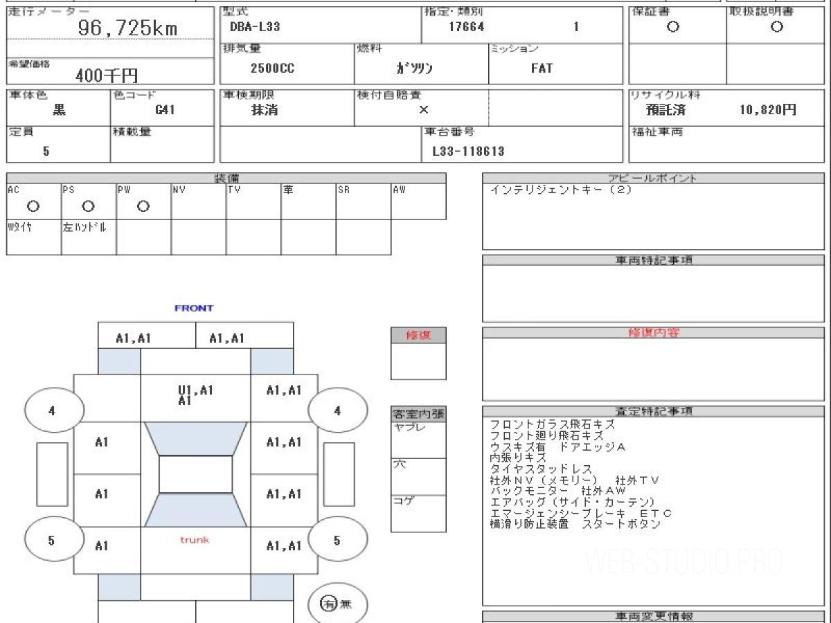Оценка аукциона: 4, что гарантирует хорошее техническое и косметическое состояние кузова и салона.