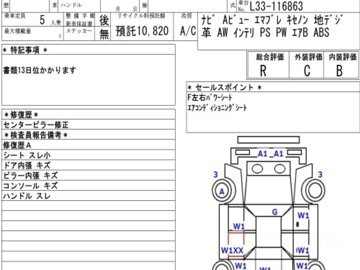 Оценка аукциона: R, что гарантирует хорошее техническое и косметическое состояние кузова и салона.