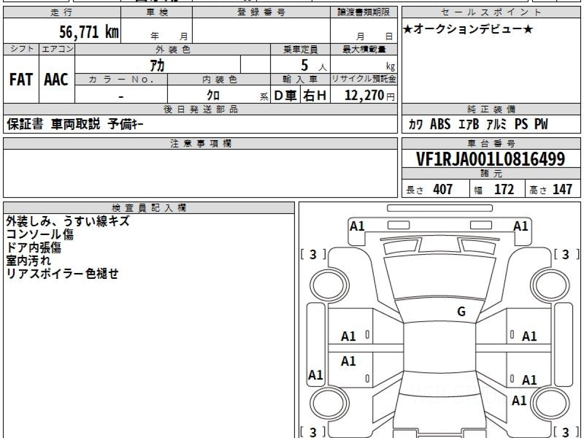 Оценка аукциона: 4, что гарантирует хорошее техническое и косметическое состояние кузова и салона.
