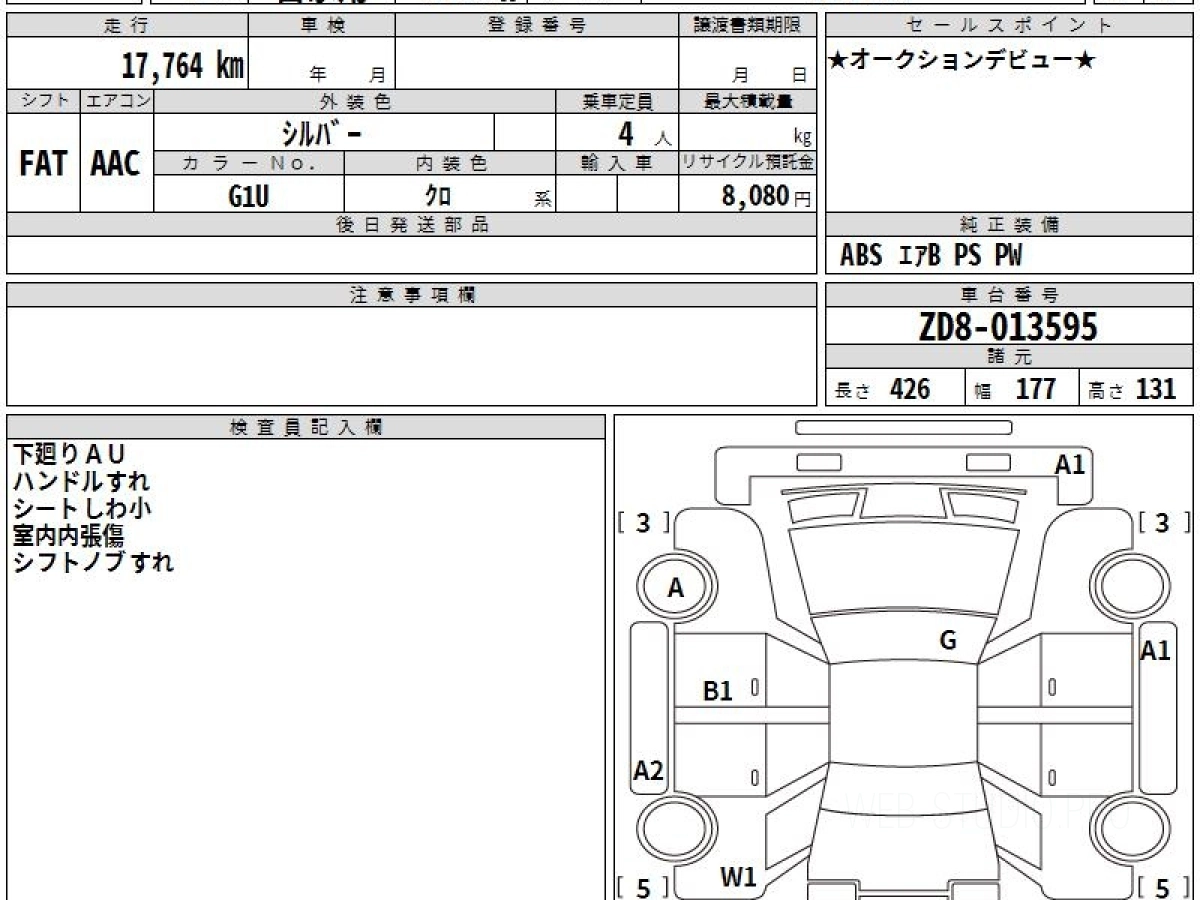 Оценка аукциона: 4.5, что гарантирует хорошее техническое и косметическое состояние кузова и салона.