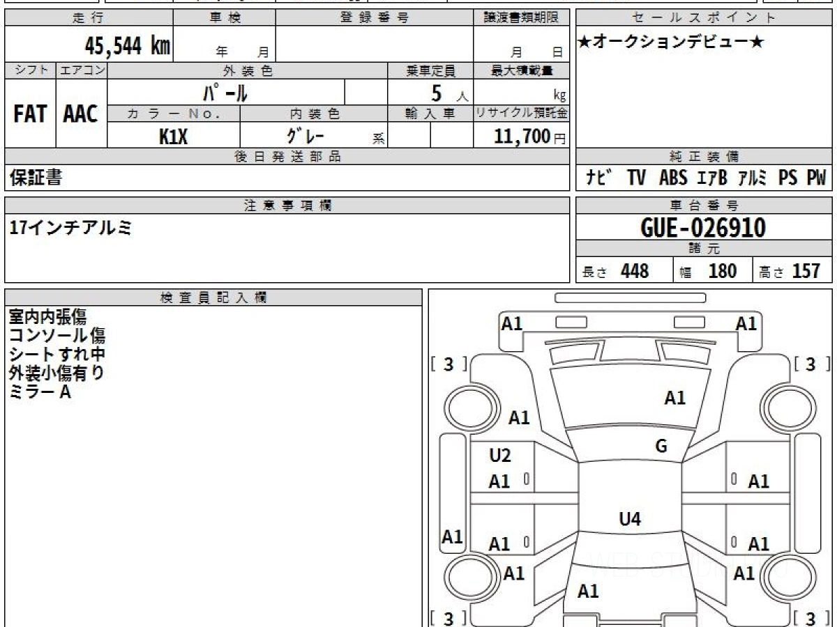 Оценка аукциона: 3.5, что гарантирует хорошее техническое и косметическое состояние кузова и салона.