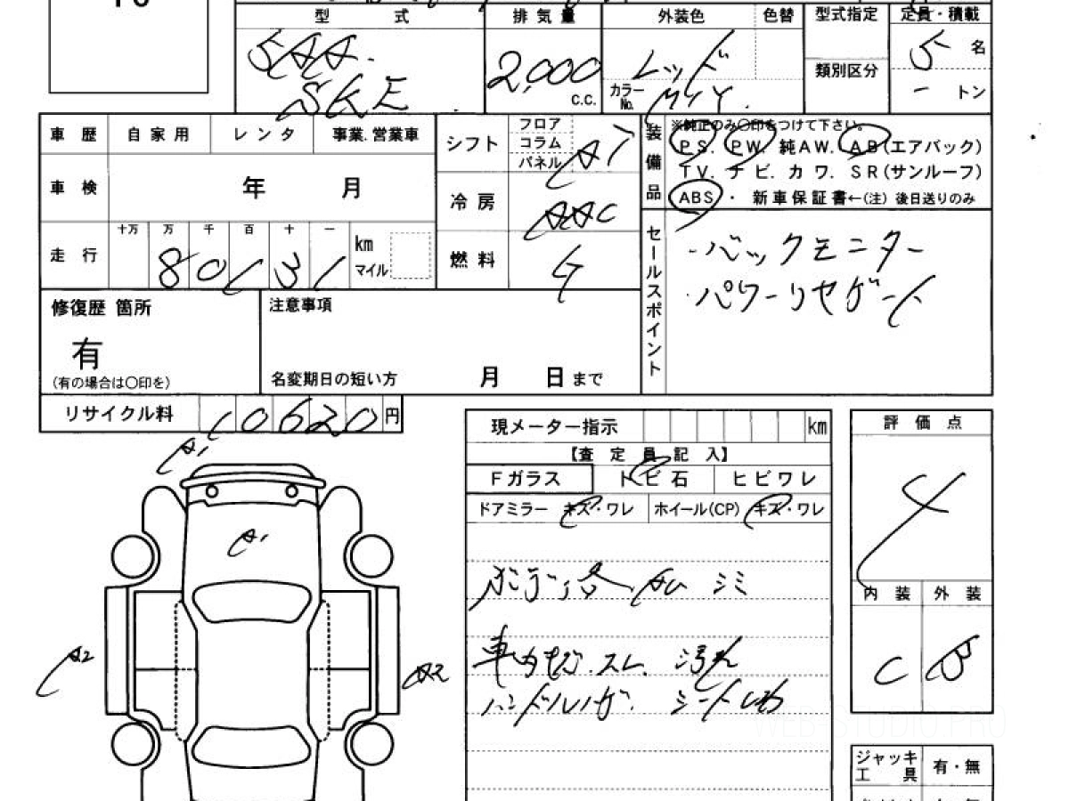 Оценка аукциона: 4, что гарантирует хорошее техническое и косметическое состояние кузова и салона.