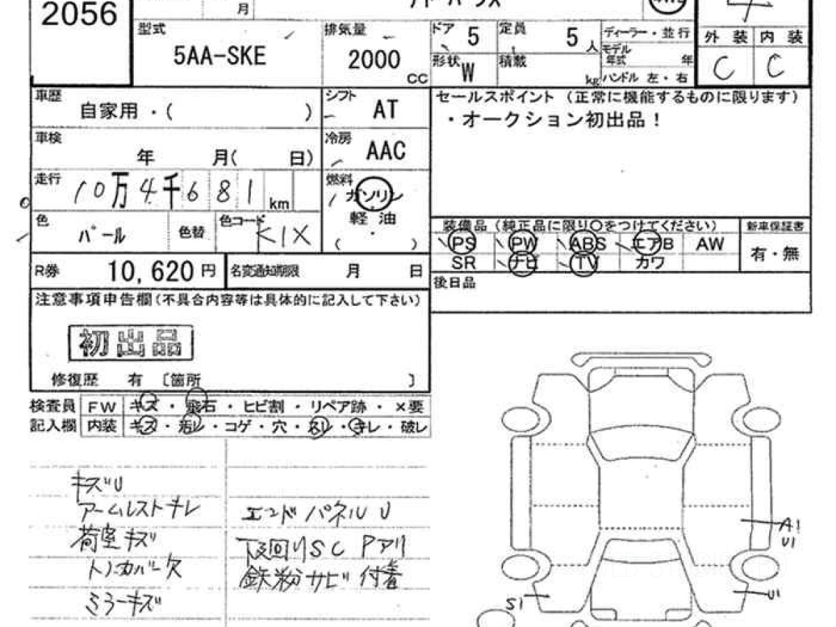 Оценка аукциона: 4, что гарантирует хорошее техническое и косметическое состояние кузова и салона.