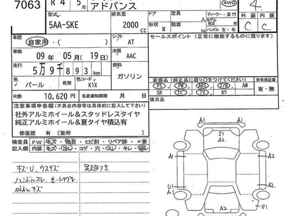 Оценка аукциона: 4, что гарантирует хорошее техническое и косметическое состояние кузова и салона.