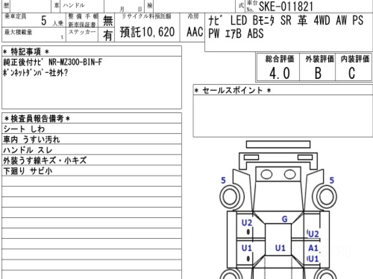 Оценка аукциона: 4, что гарантирует хорошее техническое и косметическое состояние кузова и салона.