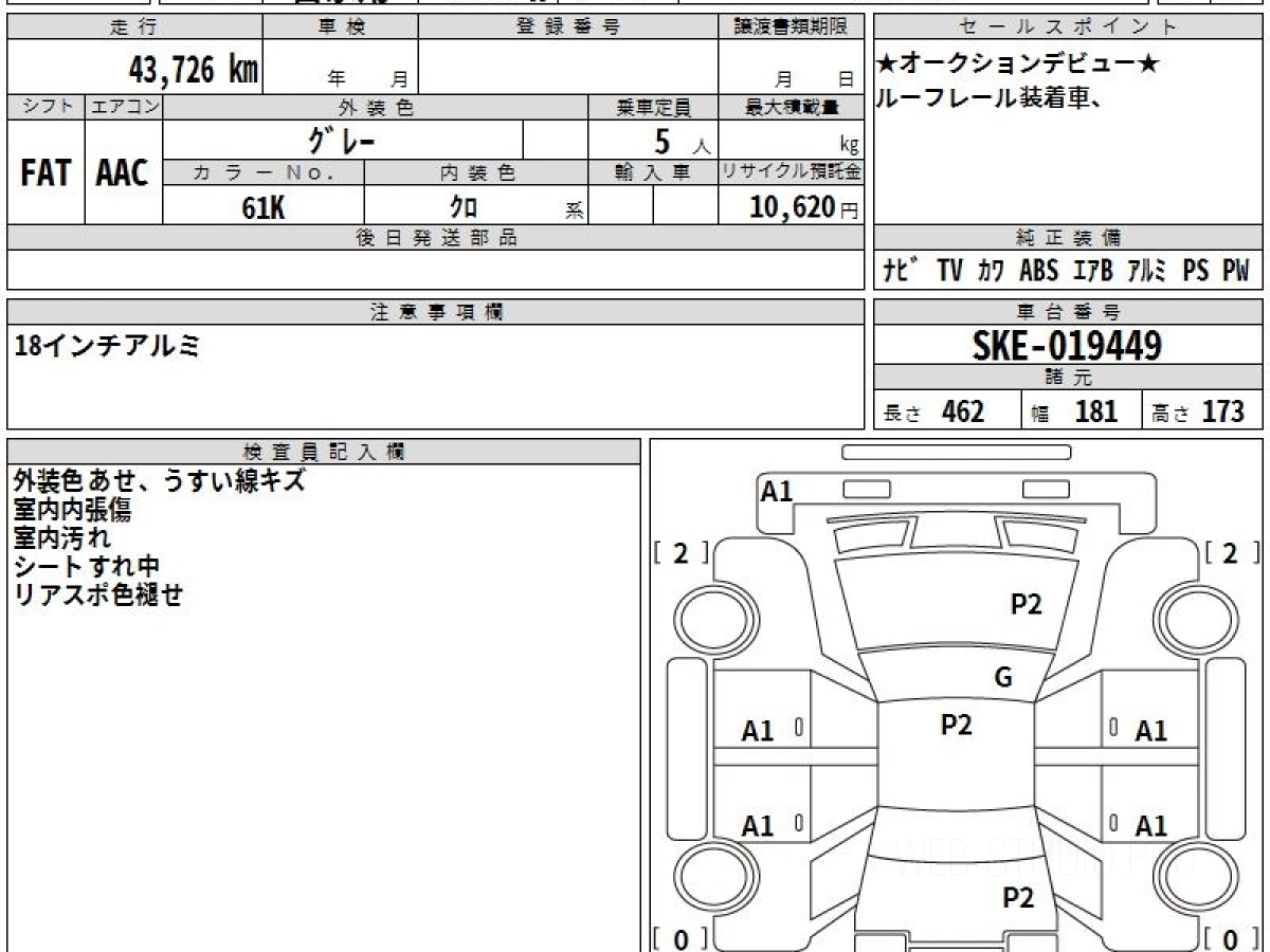 Оценка аукциона: 4, что гарантирует хорошее техническое и косметическое состояние кузова и салона.