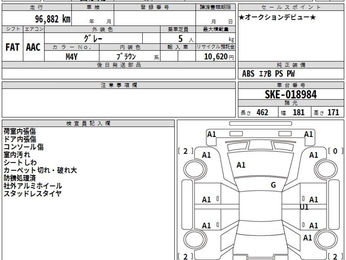 Оценка аукциона: 3.5, что гарантирует хорошее техническое и косметическое состояние кузова и салона.