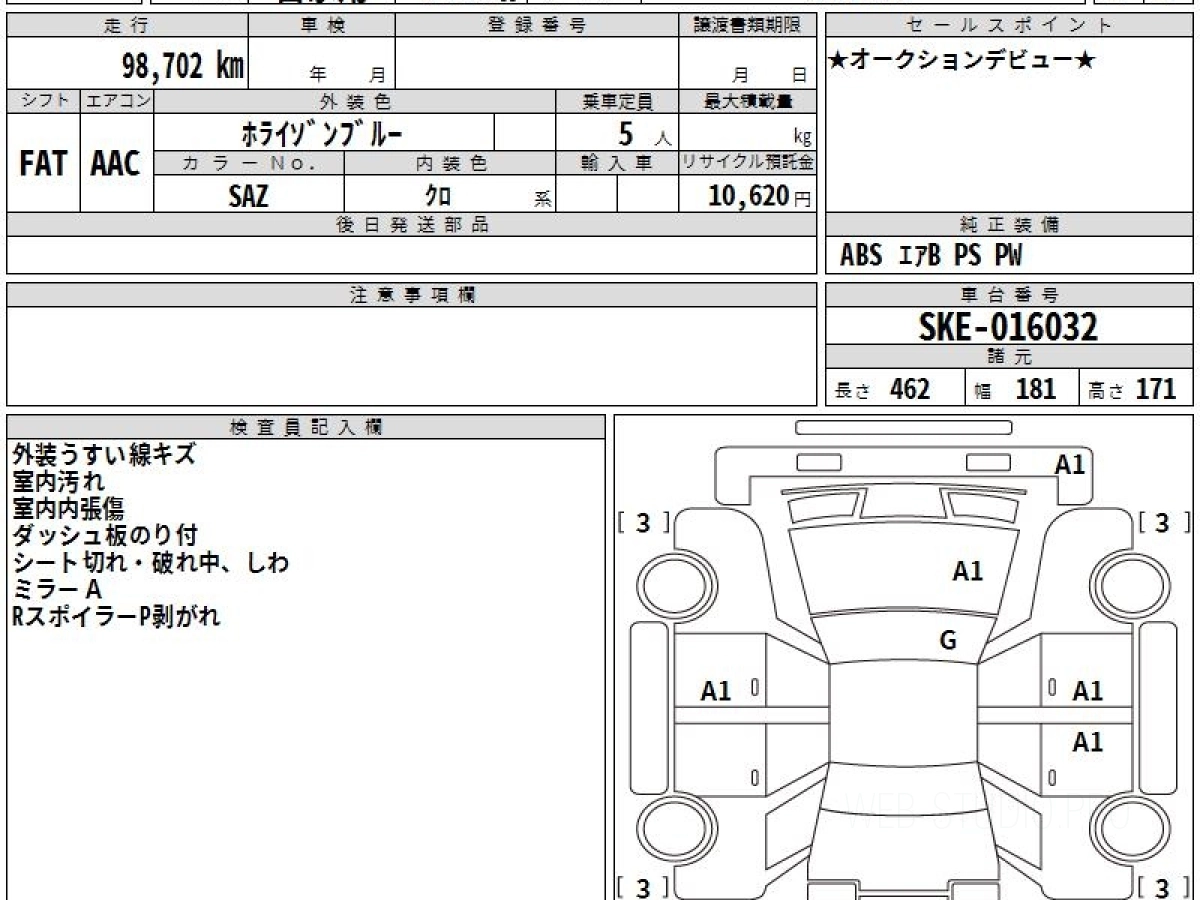 Оценка аукциона: 4, что гарантирует хорошее техническое и косметическое состояние кузова и салона.