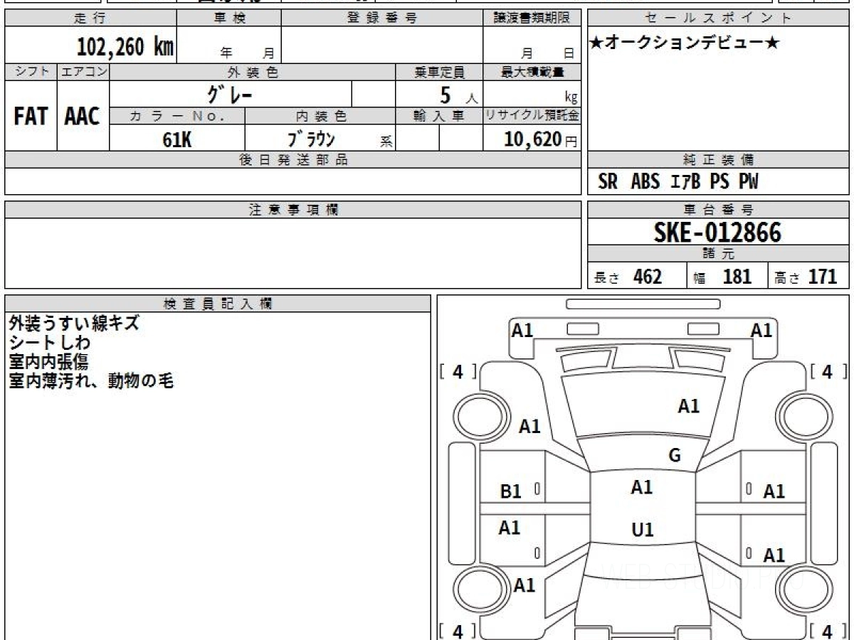 Оценка аукциона: 4, что гарантирует хорошее техническое и косметическое состояние кузова и салона.