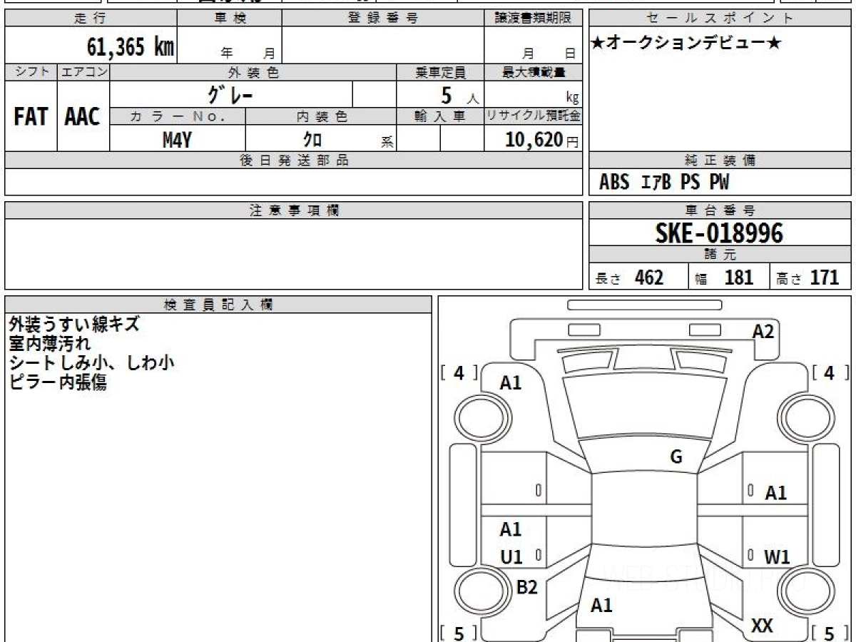 Оценка аукциона: 3.5, что гарантирует хорошее техническое и косметическое состояние кузова и салона.