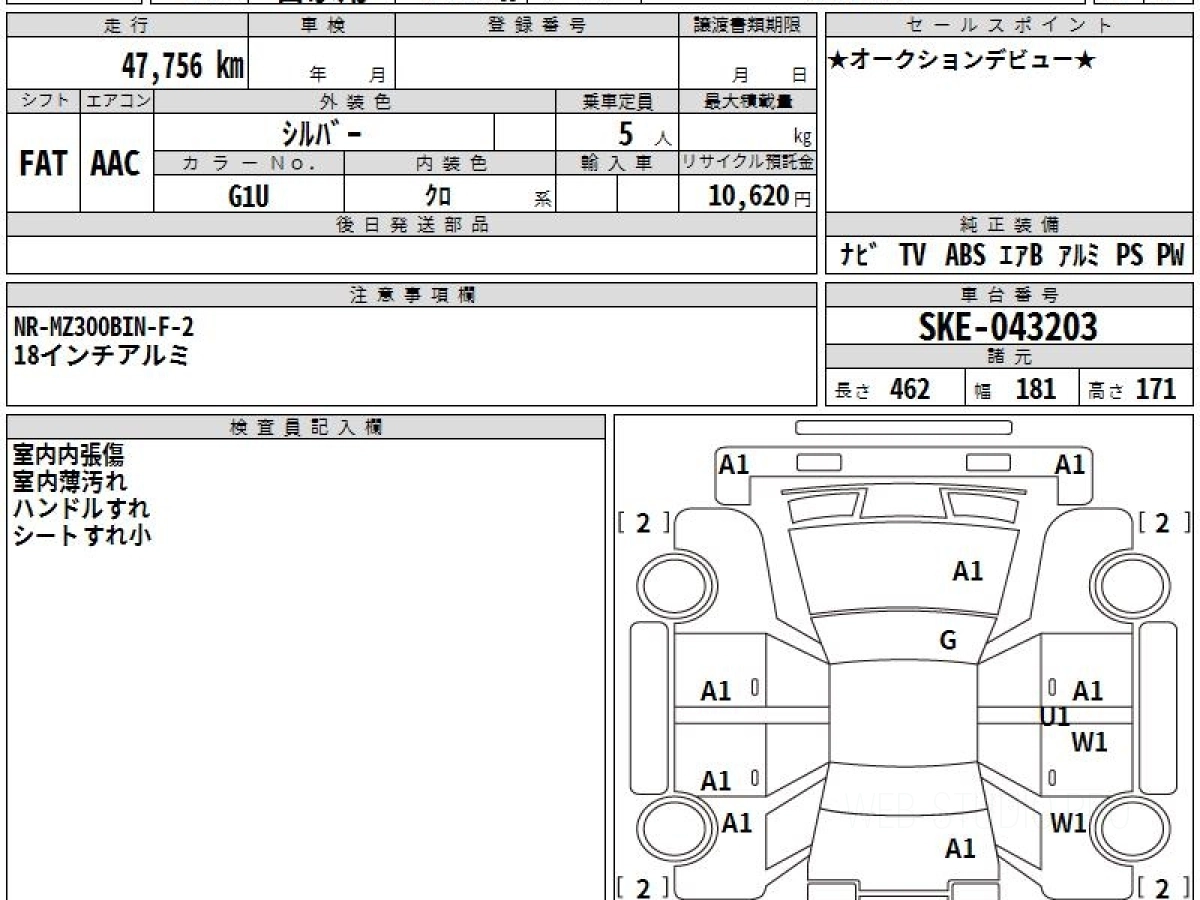 Оценка аукциона: 4, что гарантирует хорошее техническое и косметическое состояние кузова и салона.