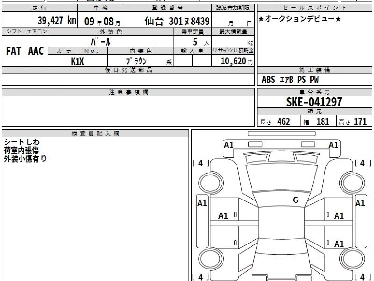 Оценка аукциона: 4.5, что гарантирует хорошее техническое и косметическое состояние кузова и салона.