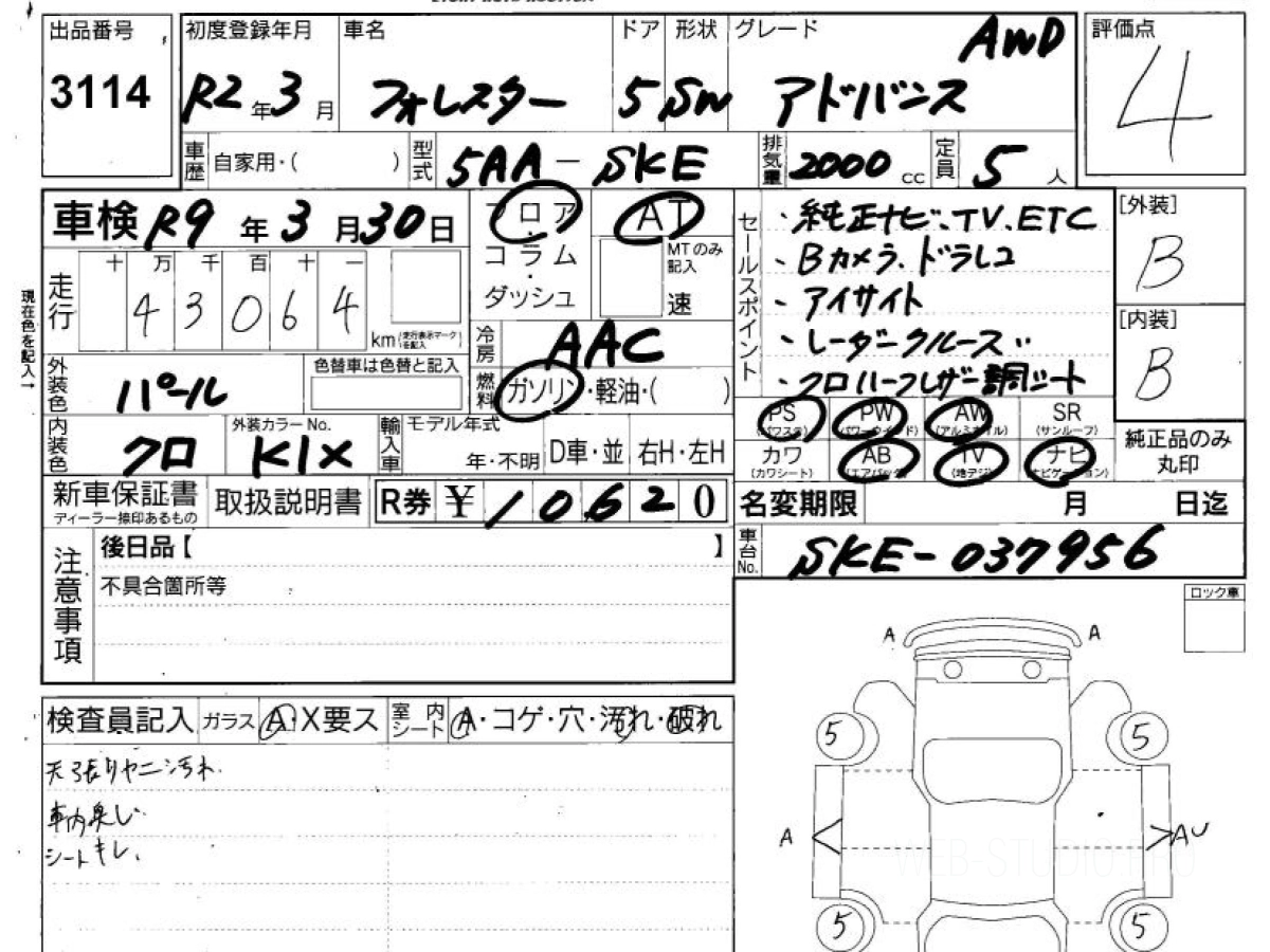 Купить SUBARU FORESTER 2020 года выпуска можно под заказ с аукционов Японии во Владивостоке с доставкой в Москву или любой другой город России.
