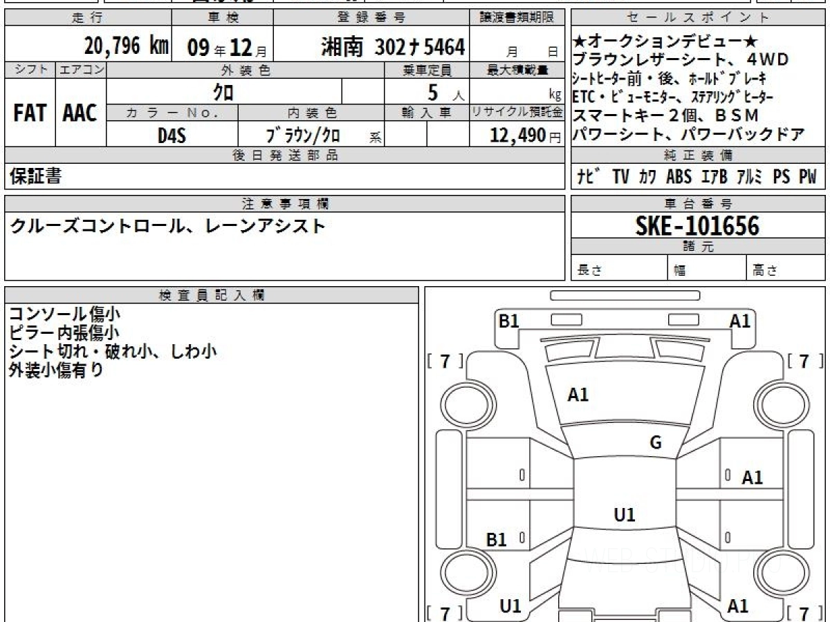 Оценка аукциона: 4, что гарантирует хорошее техническое и косметическое состояние кузова и салона.