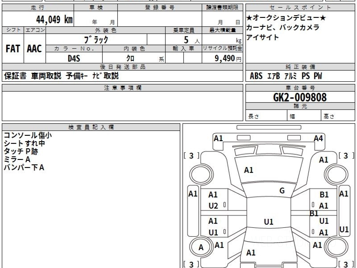 Оценка аукциона: 3.5, что гарантирует хорошее техническое и косметическое состояние кузова и салона.