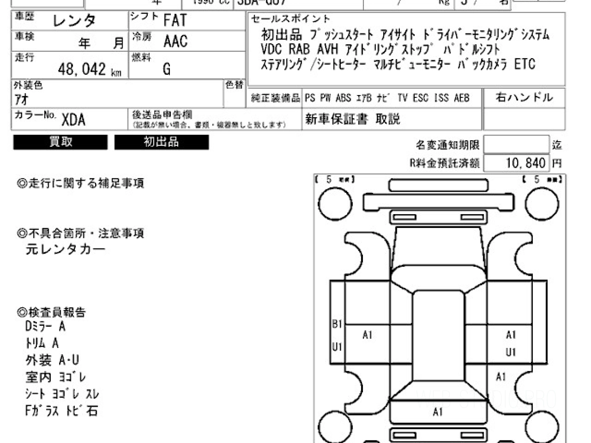 Оценка аукциона: 4, что гарантирует хорошее техническое и косметическое состояние кузова и салона.