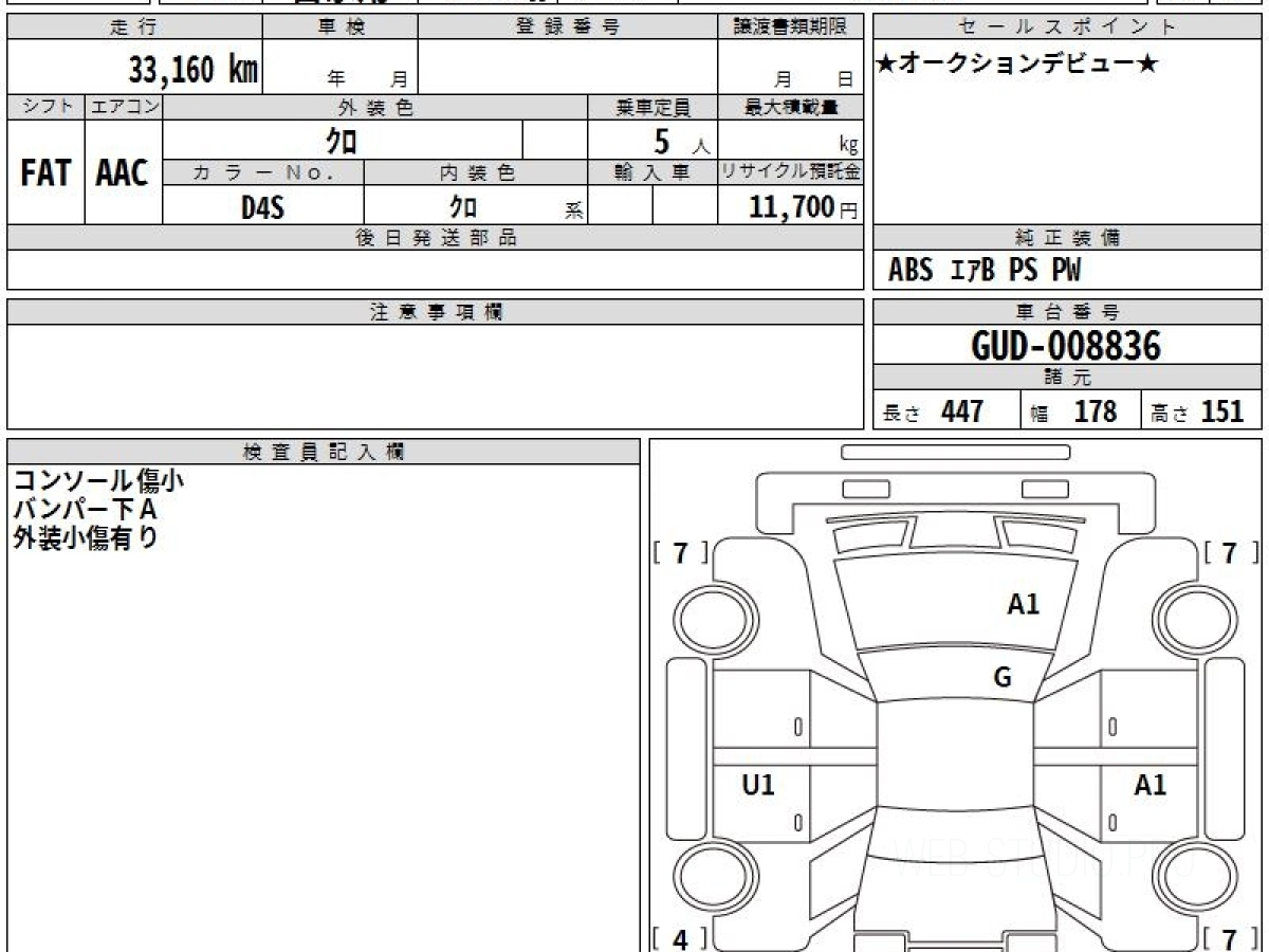 Оценка аукциона: 5, что гарантирует хорошее техническое и косметическое состояние кузова и салона.