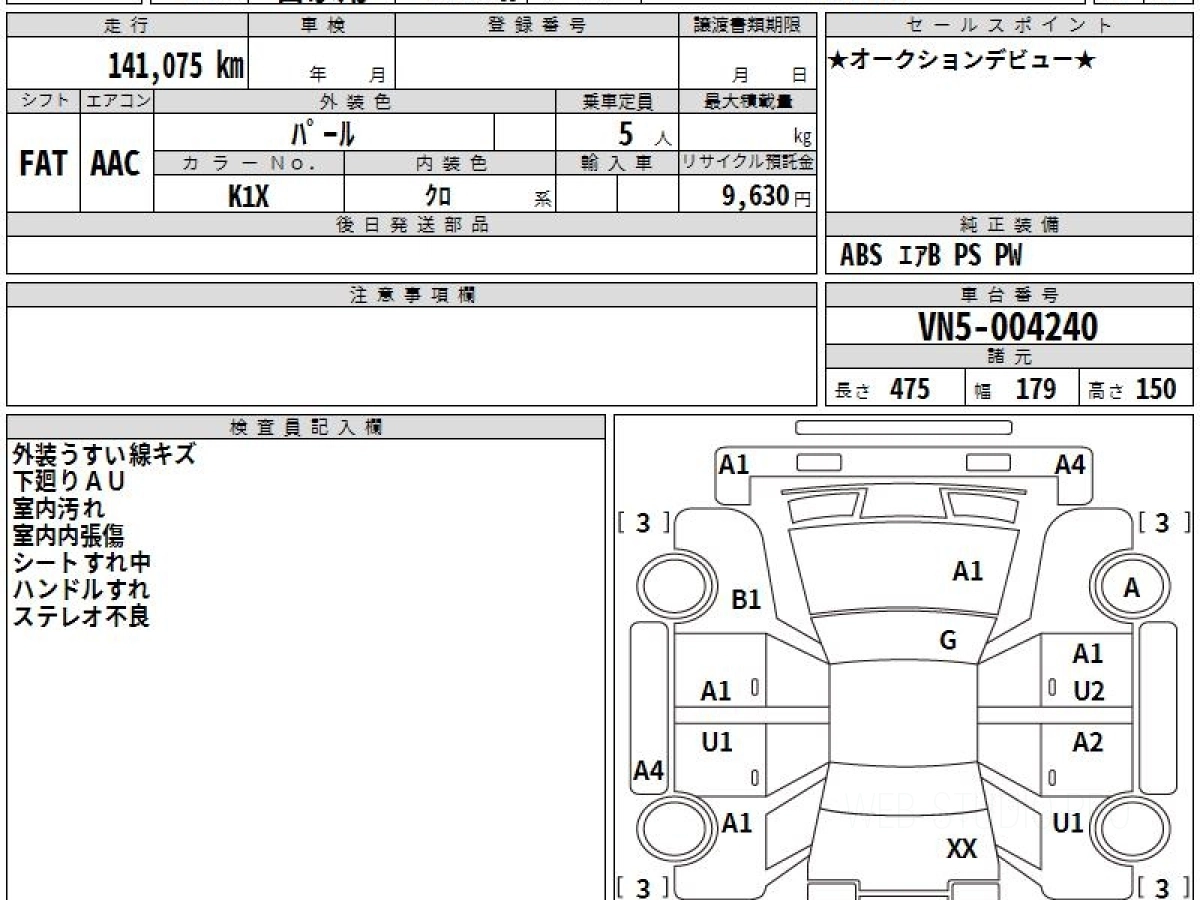 Оценка аукциона: 4, что гарантирует хорошее техническое и косметическое состояние кузова и салона.