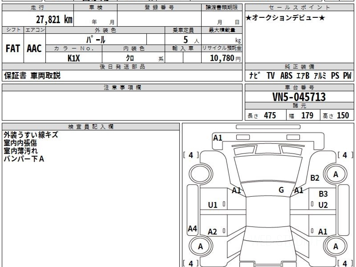 Оценка аукциона: 4, что гарантирует хорошее техническое и косметическое состояние кузова и салона.