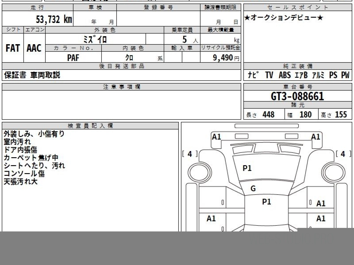 Оценка аукциона: 4, что гарантирует хорошее техническое и косметическое состояние кузова и салона.