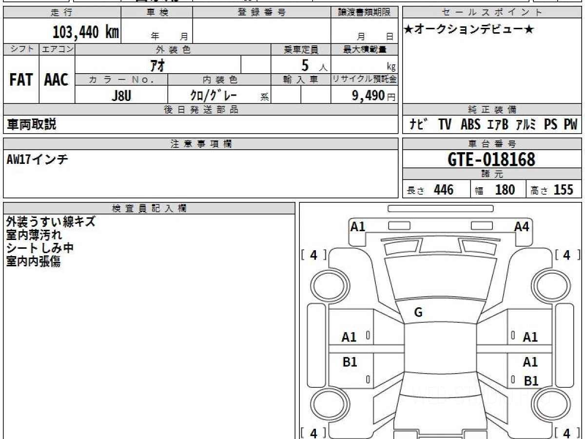 Оценка аукциона: 4, что гарантирует хорошее техническое и косметическое состояние кузова и салона.