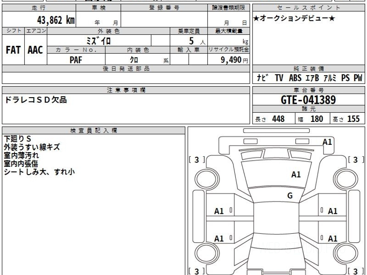 Оценка аукциона: 4, что гарантирует хорошее техническое и косметическое состояние кузова и салона.