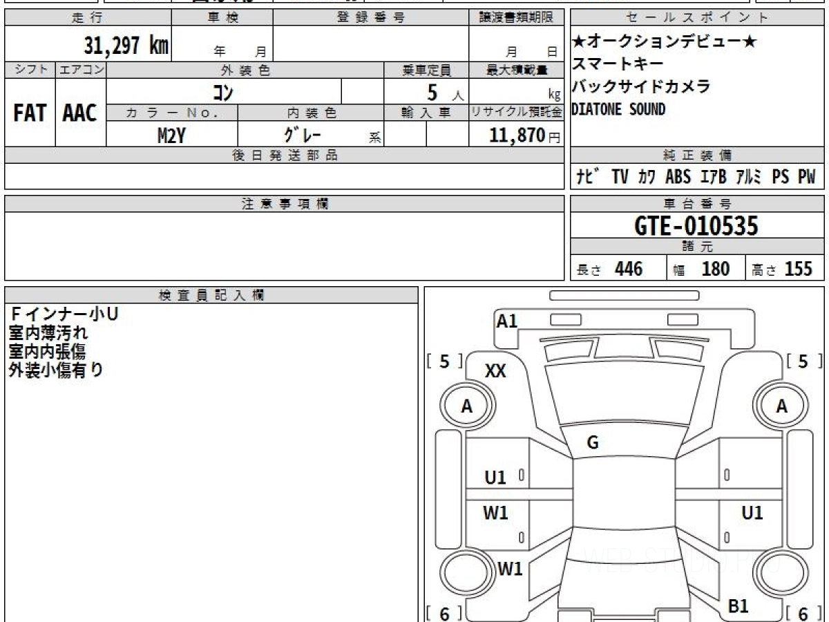 Оценка аукциона: 3.5, что гарантирует хорошее техническое и косметическое состояние кузова и салона.