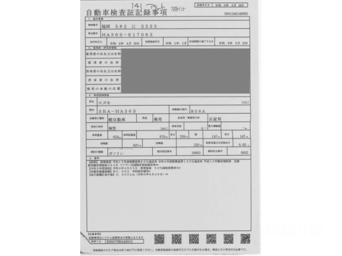 Номер кузова: HA36S.