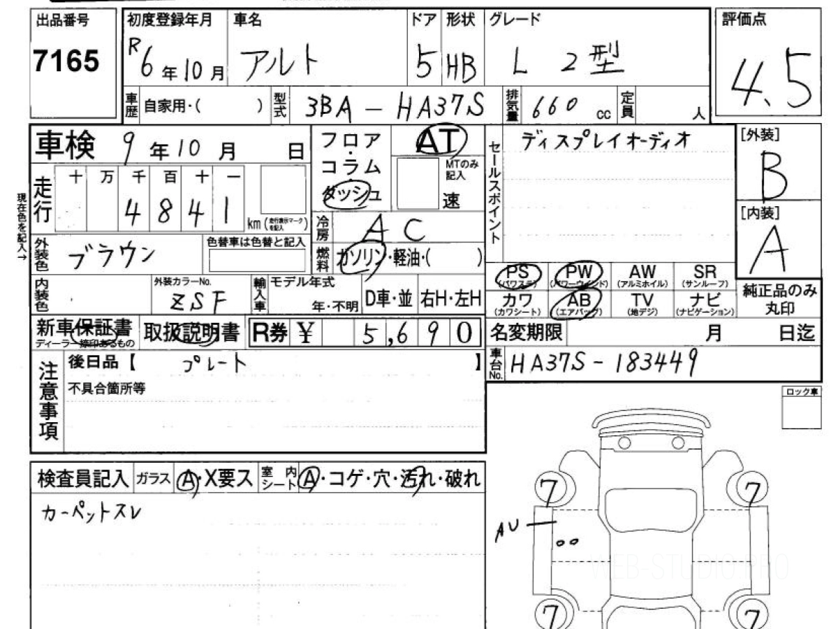 Оценка аукциона: 4.5, что гарантирует хорошее техническое и косметическое состояние кузова и салона.