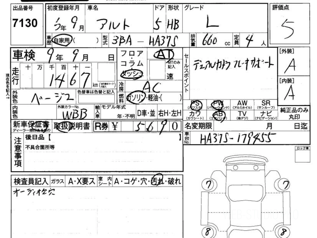 Оценка аукциона: 5, что гарантирует хорошее техническое и косметическое состояние кузова и салона.