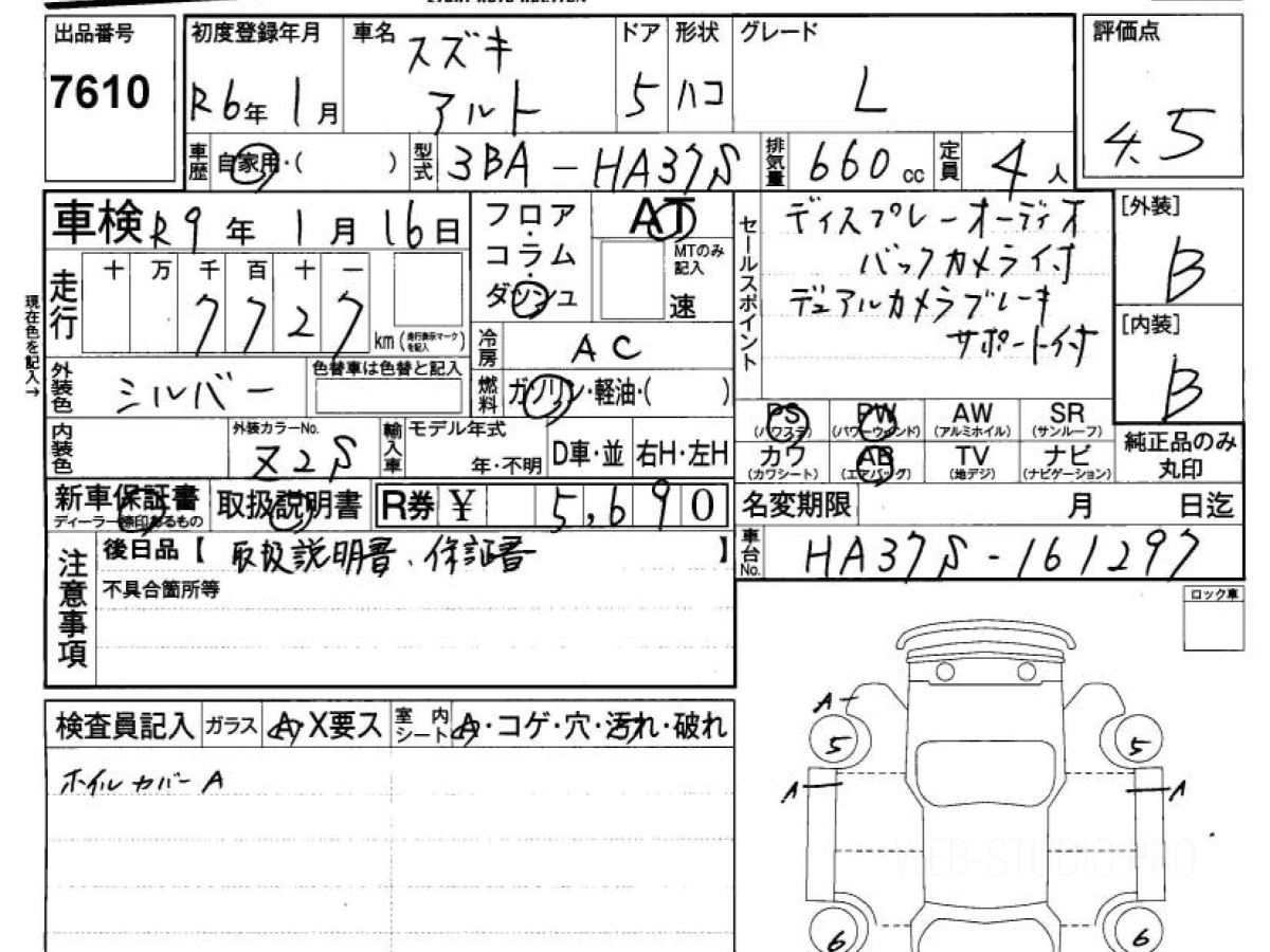 Оценка аукциона: 4.5, что гарантирует хорошее техническое и косметическое состояние кузова и салона.