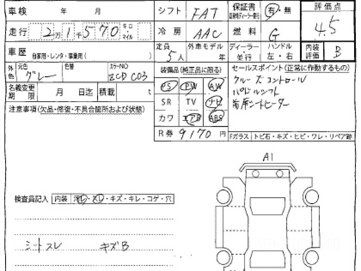 Оценка аукциона: 4.5, что гарантирует хорошее техническое и косметическое состояние кузова и салона.