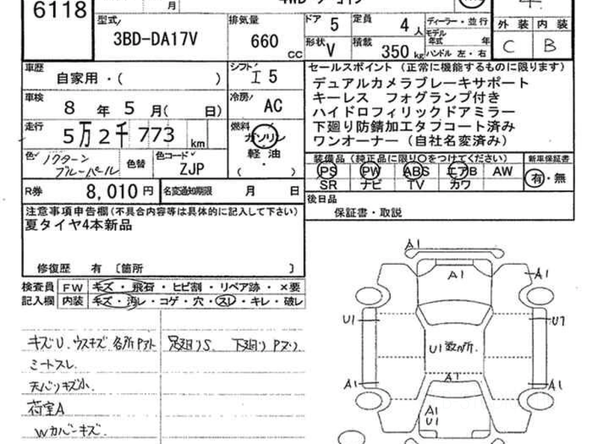 Оценка аукциона: 4, что гарантирует хорошее техническое и косметическое состояние кузова и салона.