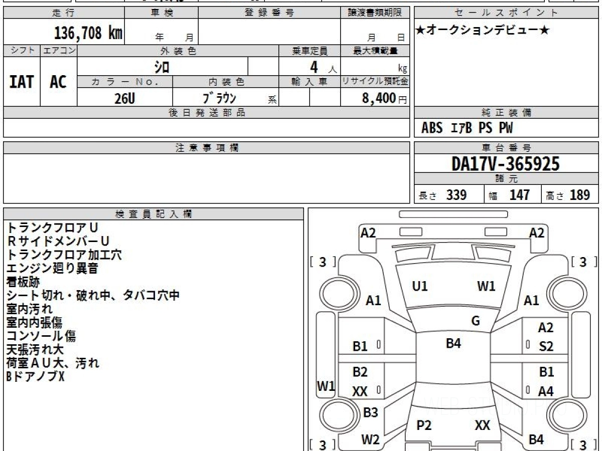 Оценка аукциона: R, что гарантирует хорошее техническое и косметическое состояние кузова и салона.