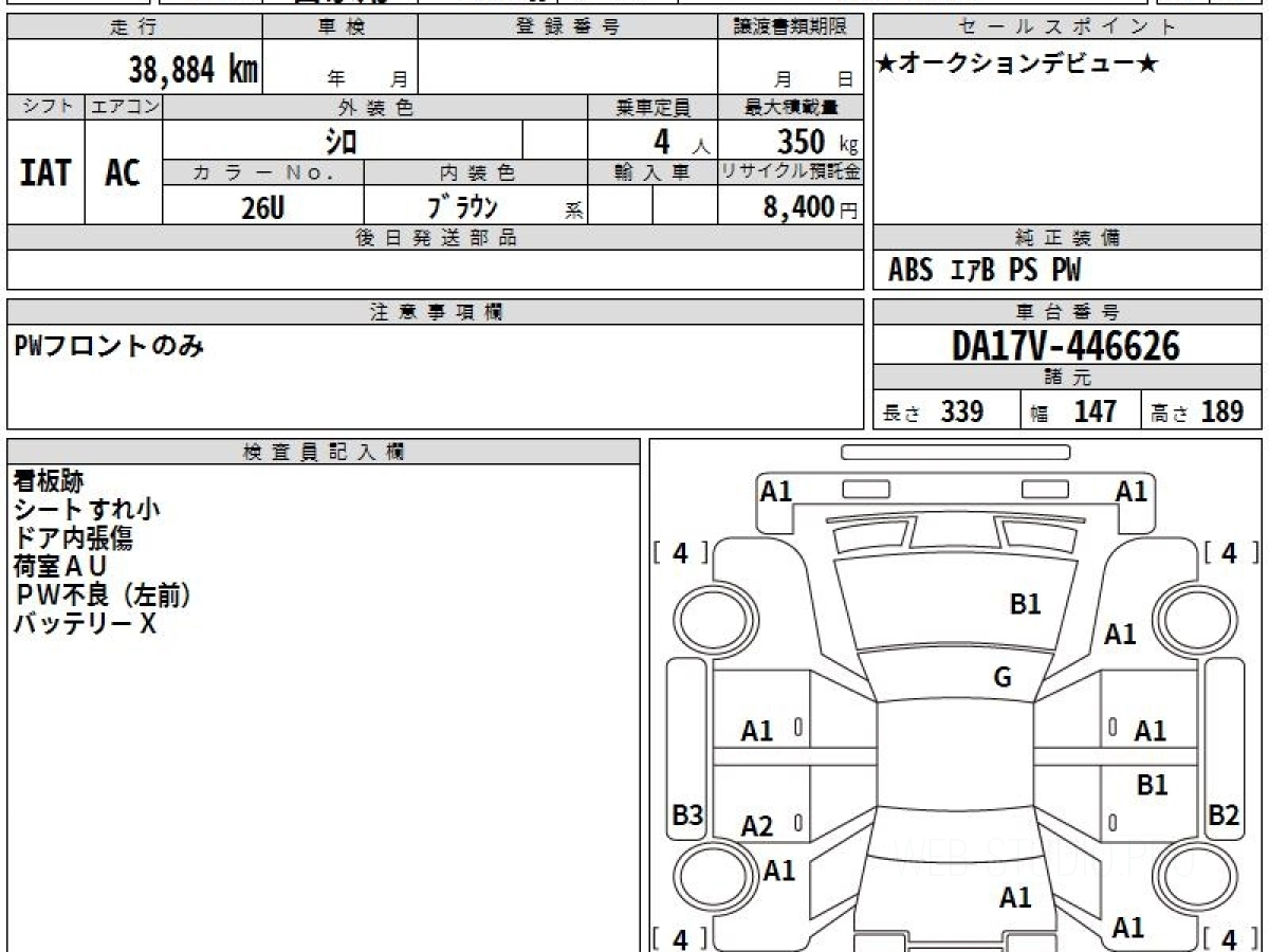 Оценка аукциона: 4, что гарантирует хорошее техническое и косметическое состояние кузова и салона.