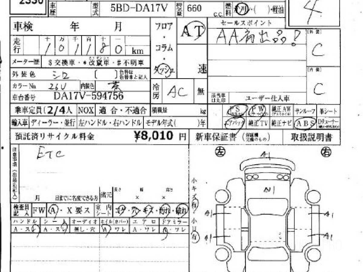 Оценка аукциона: 4, что гарантирует хорошее техническое и косметическое состояние кузова и салона.