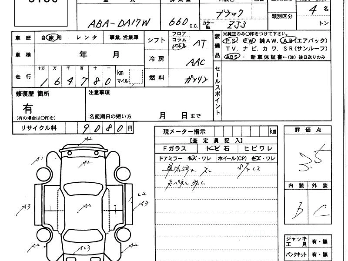 Оценка аукциона: 3.5, что гарантирует хорошее техническое и косметическое состояние кузова и салона.