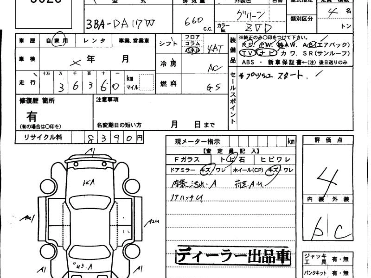 Оценка аукциона: 4, что гарантирует хорошее техническое и косметическое состояние кузова и салона.