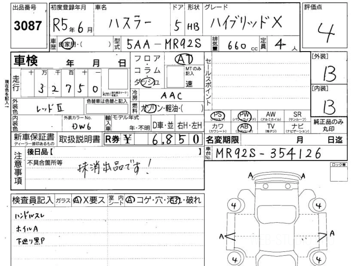 Оценка аукциона: 4, что гарантирует хорошее техническое и косметическое состояние кузова и салона.