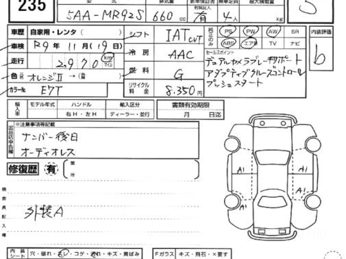 Номер кузова: MR92S.