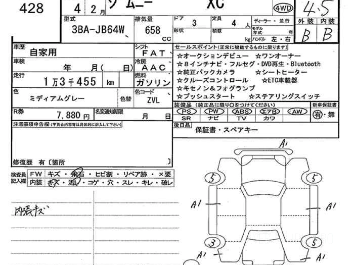 Оценка аукциона: 4.5, что гарантирует хорошее техническое и косметическое состояние кузова и салона.