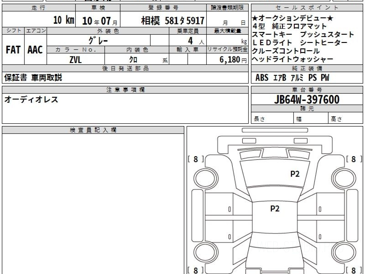 Номер кузова: JB64W.