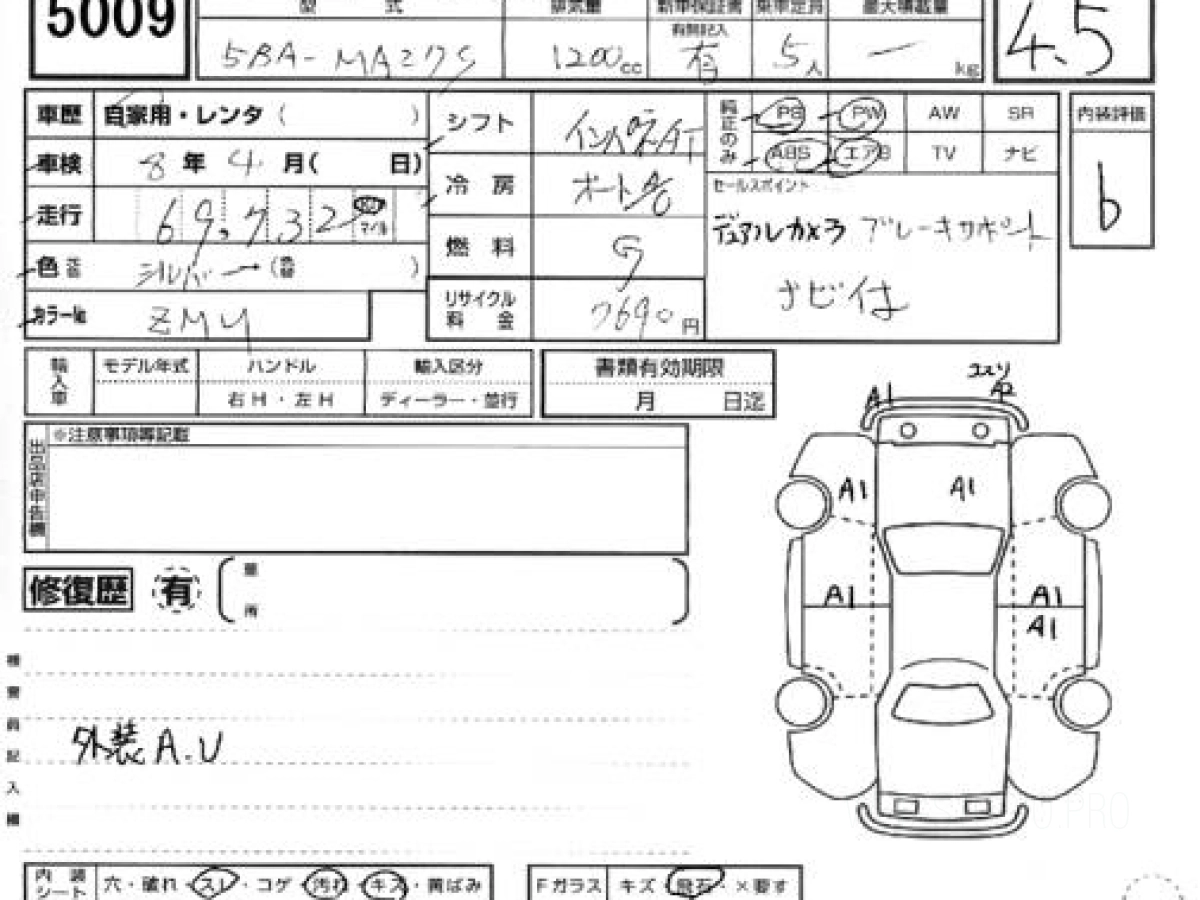 Оценка аукциона: 4.5, что гарантирует хорошее техническое и косметическое состояние кузова и салона.