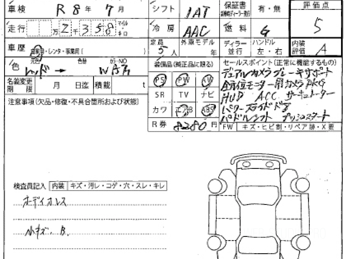 Оценка аукциона: 5, что гарантирует хорошее техническое и косметическое состояние кузова и салона.