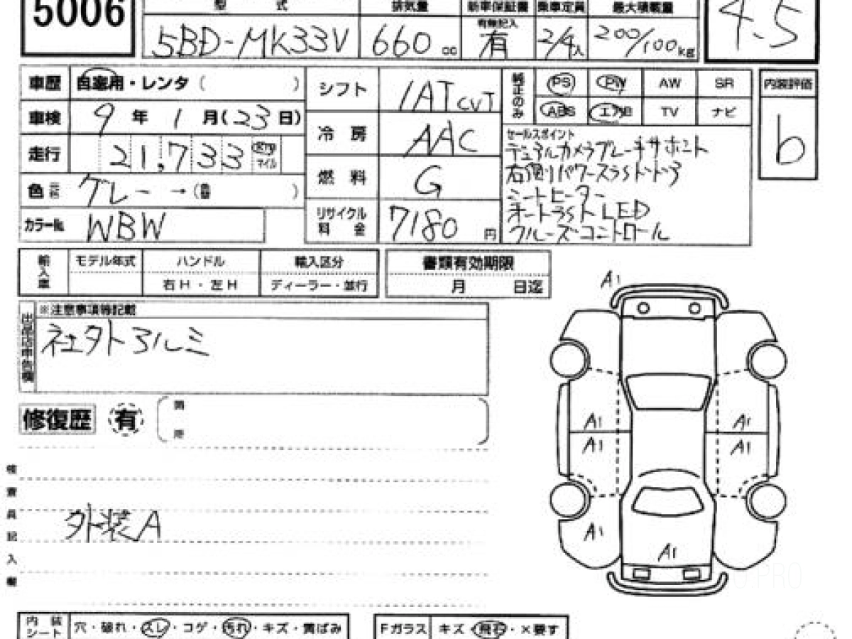 Оценка аукциона: 4.5, что гарантирует хорошее техническое и косметическое состояние кузова и салона.