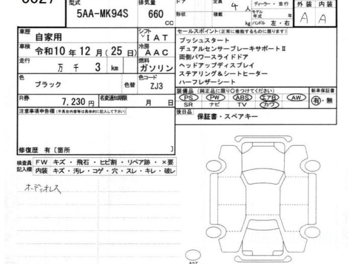 Оценка аукциона: S, что гарантирует хорошее техническое и косметическое состояние кузова и салона.